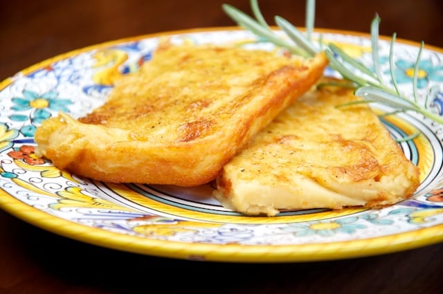 Traditionally, la farinata is baked in a round baking dish, but if you don’t have one, it will taste just as good made in a normal rectangular dish.